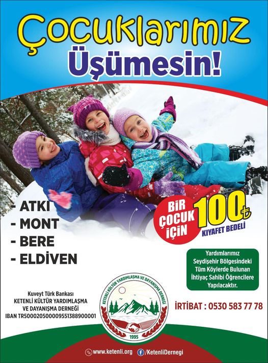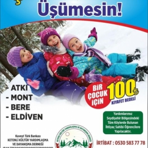 Değerli Büyüklerim , Kıymetli Hemşehrilerim Seydişehir Bölgesindeki Tüm Köy Okullarında bulunan İhtiyaç sahipli öğrencilerimiz için düzenlemiş olduğumuz * Çocuklarımız Üşümesin” Kampanyası katılarak bir çocuk da siz giydirebilirsiniz.